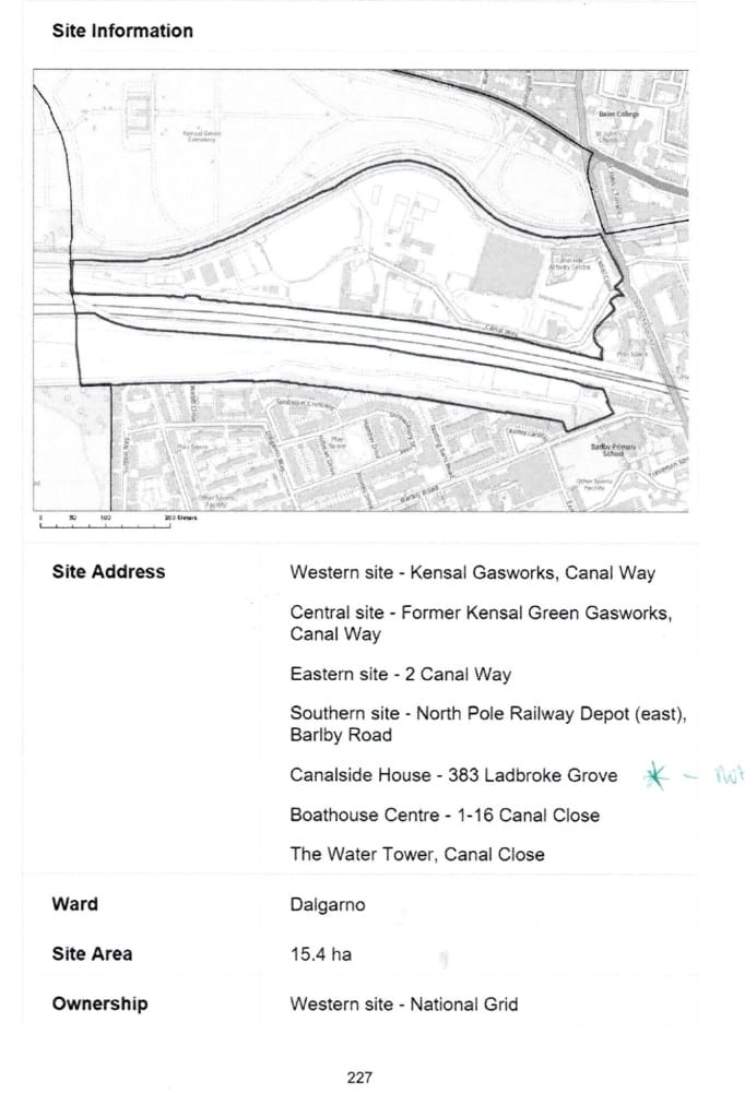 No explanation is given in the Local Plan as to why Canalside House is included or how the decision to include it was reached. The images below from RBKC’s submission to the government